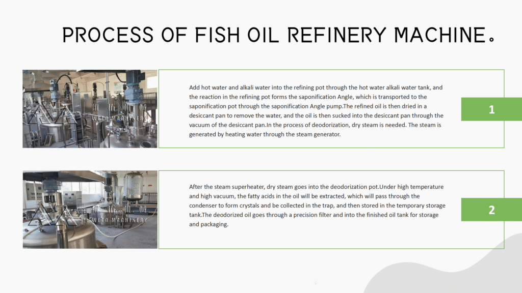5. If the oil quality is high, add light to remove the odor tower, and there is a grease trap to reduce splashing during deodorization, which will be taken away by vacuum.