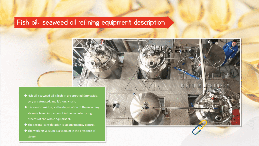 2. Automatic control system, pure steam generator, thermal oil furnace.Electric heating.High pressure boiler for deodorization.The temperature is 180-190 degrees Celsius.